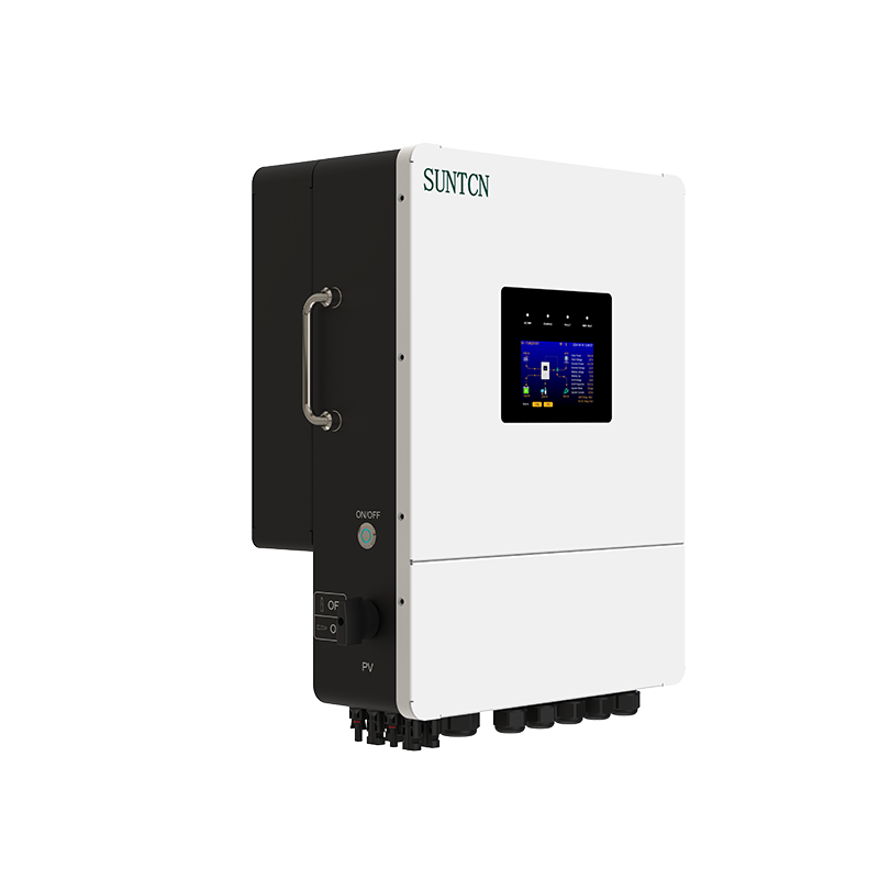 SUNTCN Hybrid Inverter integroi kaikki nämä polut kompaktiin, tehokkaaseen runkoon, jolloin asentajat voivat liittää aurinkosähköä, akkuja, verkkoja ja generaattoreita ilman ulkoisia kytkentälaitteita. Tämä all-in-one-arkkitehtuuri vähentää asennuksen monimutkaisuutta ja komponenttien määrää – keskeinen etu sekä asuntojen jälkiasennuksissa että kaupallisissa uusissa rakennuksissa.